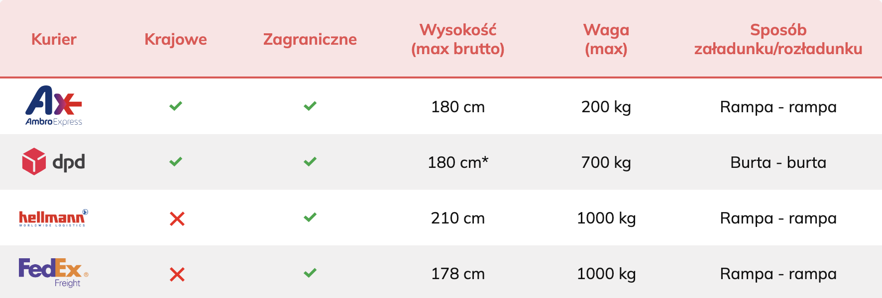✅ Kierowca nie wnosi przesyłki do środka, ale załadunek i rozładunek są po jego stronie