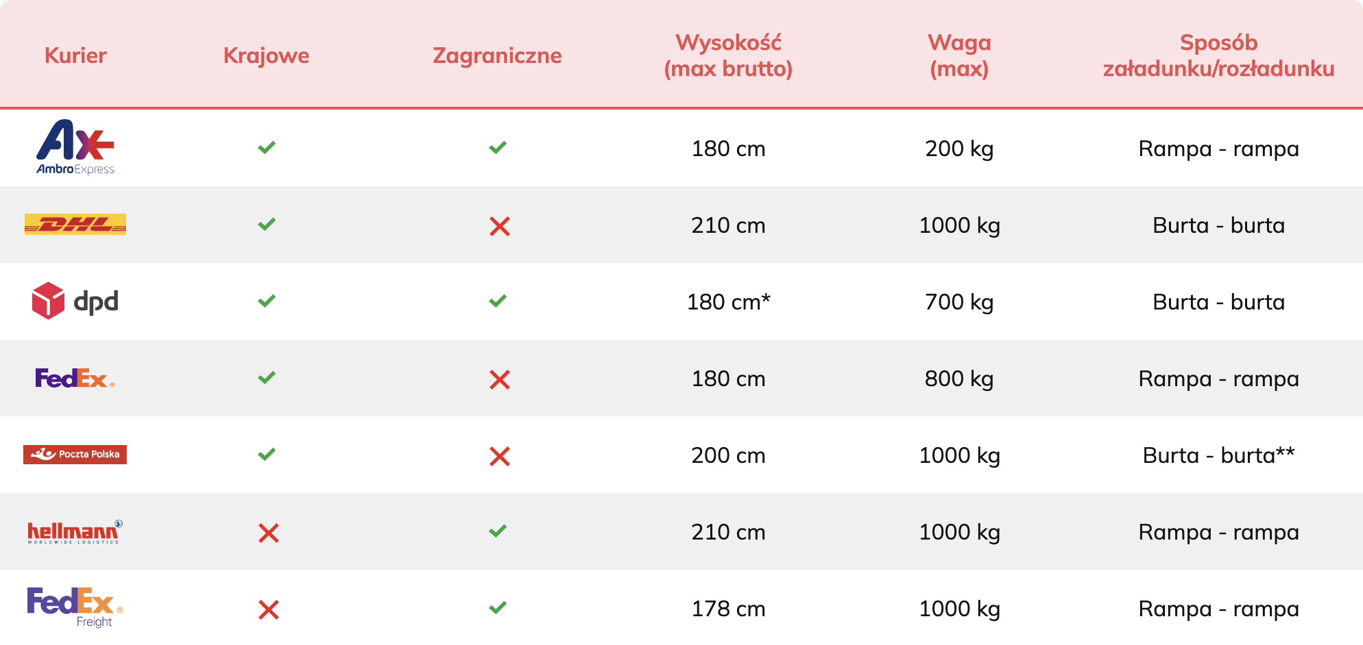 ✅ Kierowca nie wnosi przesyłki do środka, ale załadunek i rozładunek są po jego stronie