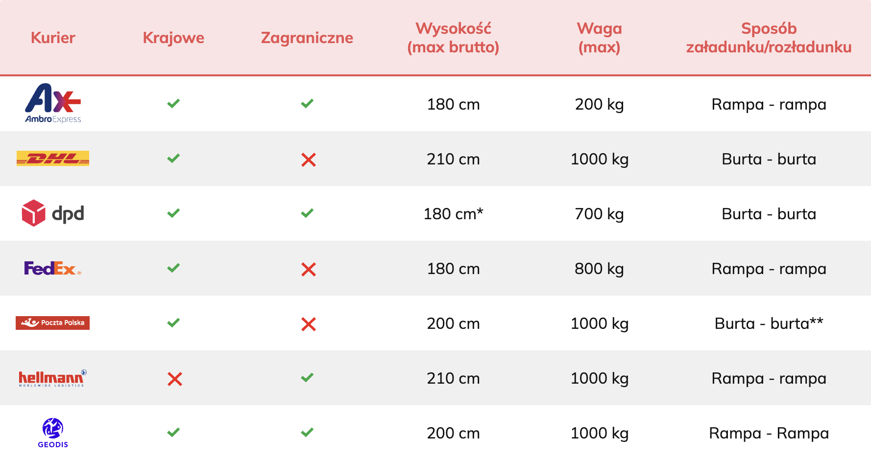 ✅ Kierowca nie wnosi przesyłki do środka, ale załadunek i rozładunek są po jego stronie